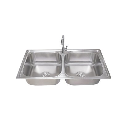 ซิงค์ล้างจานสเตนเลส 2 หลุม แบบฝัง พร้อมที่พักจาน โครงสร้างสเเตนเลส หนา 0.6 มม สะดืออ่างใหญ่พิเศษ