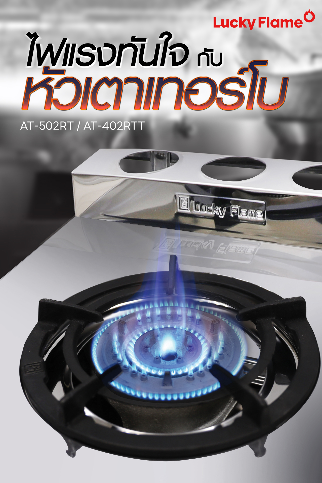 ในปี 2025 นี้ ทุกเมนูจะร้อนฉ่าไปกับเตาของลัคกี้เฟลมที่ถูกอัพเกรด รุ่นเดิมที่คุ้นเคยแต่ให้ความรู้สึกใหม่อันร้อนแรง ถูกออกแบบมาให้รองรับกับครัวไทยถูกใจสายแม่ค้า กับ เตาแก๊สหัวเทอร์โบ เปลวไฟ 3 วง พร้อมเปลวไฟเทอร์โบแกนกลางเตา ที่ให้ความร้อนมากถึง 4.6 Kw. ร้อนกว่าเตาทั่วไป 40% ไม่ว่าจะต้ม ผัด แกง ทอด ก็เอาอยู่ สามารถปรับไฟได้ 3 ระดับ