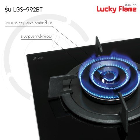 เตาแก๊สแบบฝัง รุ่น LGS-992BT ให้เปลวไฟได้ 3 ชั้น เต็มประสิทธิภาพกับภาชนะทุกขนาด
