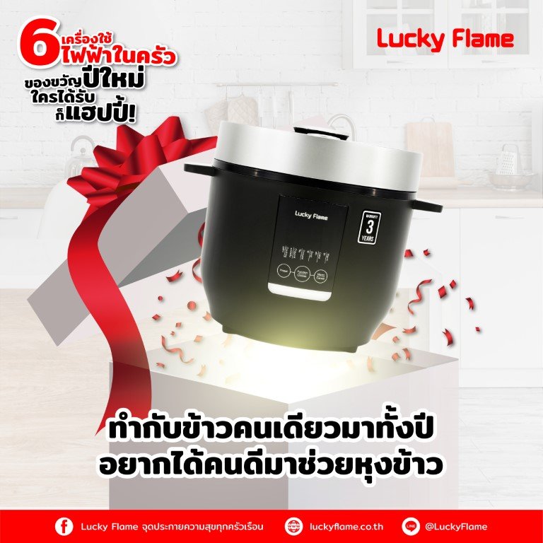 อีกแค่อึดใจเดียวก็จะถึงเทศกาลปีใหม่อีกแล้ว เชื่อว่าหลายคนนึกถึงกิจกรรมส่งท้ายปีเก่า ต้อนรับปีใหม่ อย่างงานเลี้ยงปีใหม่ที่พ่วงมาการจับสลากของขวัญปีใหม่ ซึ่งเป็นหนึ่งในกิจกรรมที่หลาย ๆ คนตกอยู่ในสถานการณ์วิกฤต ด้วยคิดไม่ออกว่าจะเลือกซื้ออะไรดี แน่นอนที่สุดเครื่องใช้ไฟฟ้าในครัวคือสุดยอดของขวัญที่ถูกนำมาจับฉลากมากที่สุดและยังเป็นของขวัญที่ส่งมอบให้กันที่เรียกว่า “บัวไม่ช้ำ น้ำไม่ขุ่น” Lucky Flame ภูมิใจนำเสนอ 6 เครื่องใช้ไฟฟ้าในครัว จุดประกายไอเดียสร้างสรรค์ให้คุณได้เลือกซื้อของขวัญปีใหม่ ผลิตภัณฑ์คุณภาพ เทคโนโลยีทันสมัยได้มาตรฐานสากล เมื่อมอบให้ใครคนรับก็ปลื้มใจ จะซื้อให้ญาติผู้ใหญ่ พ่อแม่ แฟน ลูกหลาน เพื่อนฝูง เป็นของขวัญปีใหม่ไปจับฉลากหรือมอบให้ใครคนรับก็แฮปปี้