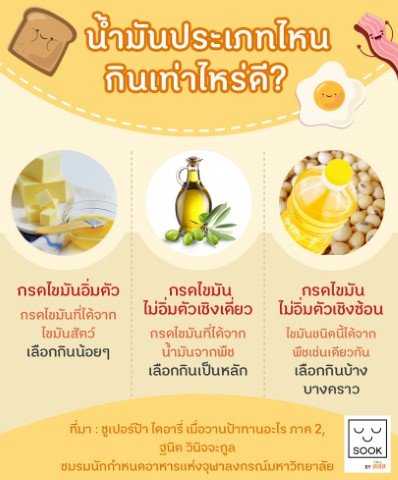 นอกจากเรื่องปริมาณไขมันในอาหารแล้ว สำหรับคนที่ใส่ใจสุขภาพ ควรจะสนใจในเรื่องของชนิดของไขมันด้วยอีกส่วนหนึ่งด้วย โดยที่เราควรรับประทานไขมันไม่อิ่มตัวเชิงเดี่ยว หรือง่ายๆ ก็คือน้ำมันพืชจำพวก น้ำมันมะกอก น้ำมันรำข้าว น้ำมันงา น้ำมันคาโนลา ฯลฯ หรือกรดไขมันไม่อิ่มตัวเชิงซ้อนบ้งเป็นครั้งคราวไป อันได้แก่ น้ำมันถั่วเหลือง น้ำมันข้าวโพด น้ำมันดอกทานตะวัน