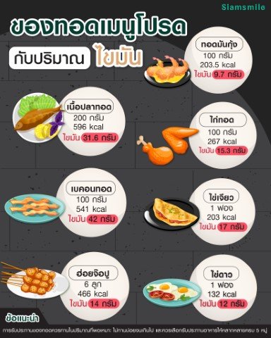 หลายๆ ท่านหลงรักการกินของทอด กรุบๆ กรอบๆ มันช่างอร่อยเกินต้านทาน แต่การรับประทานของทอดเป็นประจำอาจส่งผลที่ไม่ดีต่อสุขภาพและรูปลักษณ์ภายนอกได้ เนื่องจากในของทอดจะมีปริมาณไขมันที่สูง ซึ่งมาพร้อมกับแคลอรี่ที่สูง เพราะไขมัน 1 กรัม ให้พลังงานสูงถึง 9 kcal ในขณะที่คาร์โบไฮเดรตและโปรตีนให้พลังงานเพียง 4 kcal ต่อกรัมเท่านั้นเอง