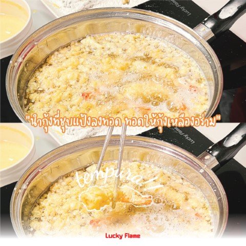 วันนี้ ลัคกี้เฟลม ขอเสนอเมนู กุ้งเทมปุระ กรุบๆ กรอบๆ อร่อยโดนใจทุกช่วงวัย มีปริมาณแคลอรี่อยู่ที่ราว 60-80 kcal ต่อชิ้นเท่านั้นเอง หลายๆ คนอาจจะคิดว่ามันทำยากมากๆ แต่จริงๆ แล้วมันไม่ยากเลย แค่เราต้องรู้วิธีทำให้แป้งเป็นเม็ดๆ และให้มันเกาะตัวกุ้งเท่านั้นเอง