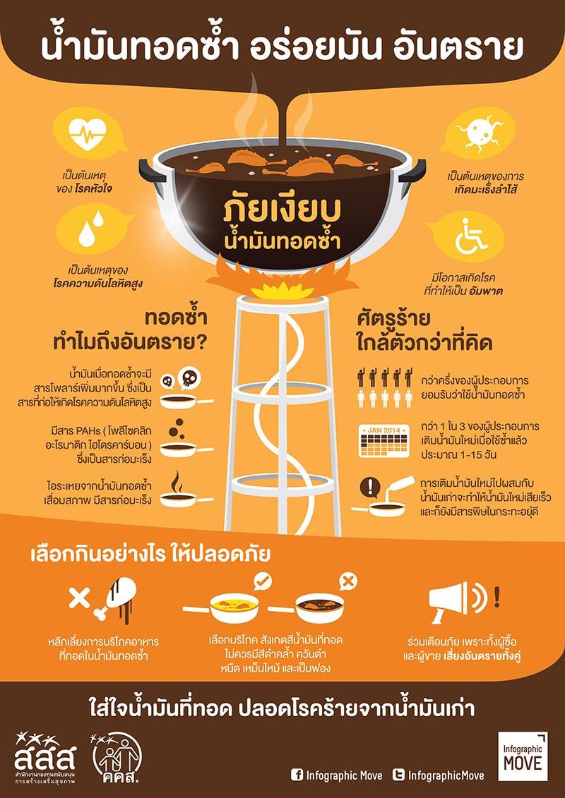 - จากข่าวไทยรัฐ วันที่ 12 พ.ย. 2560 "จริงหรือมั่ว! ไอน้ำมันทอดในครัว เสี่ยงเป็นโรคร้าย ตายได้จริง?"