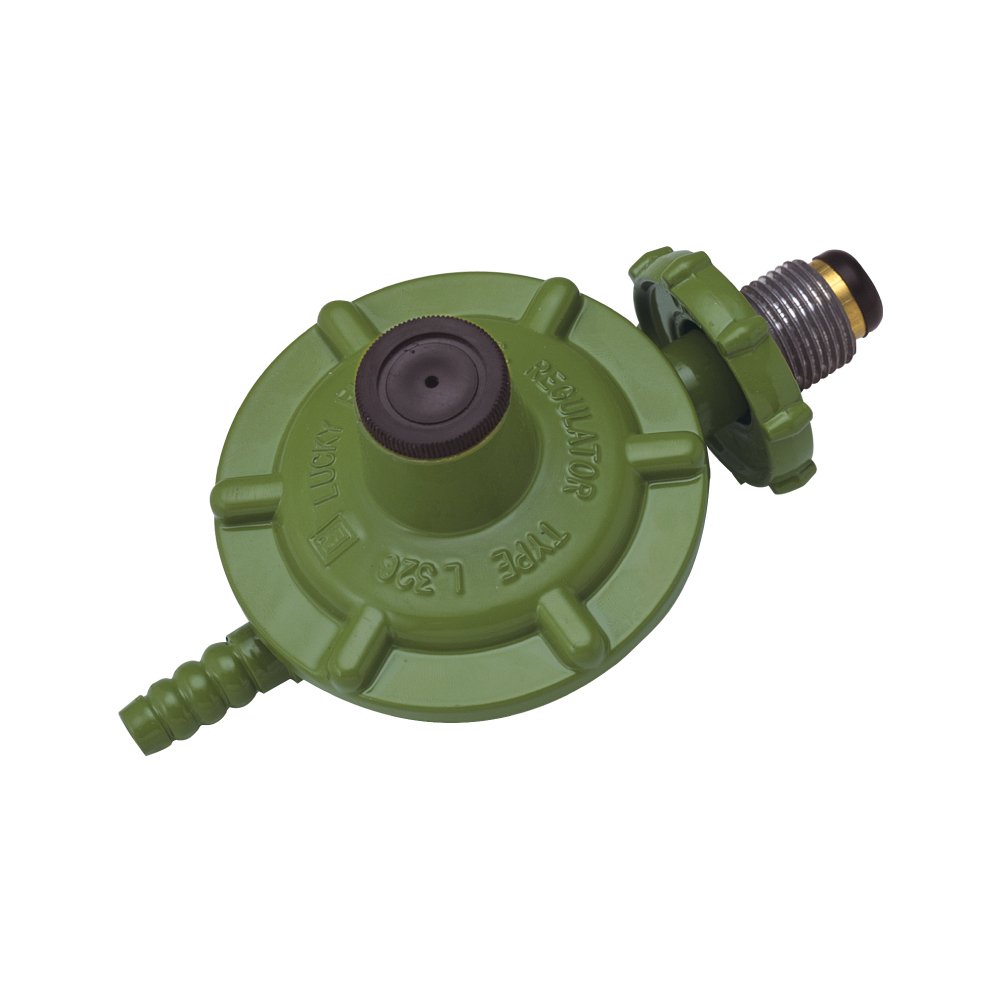 Low-pressure liquefied petroleum gas (LPG) regulator in green.
