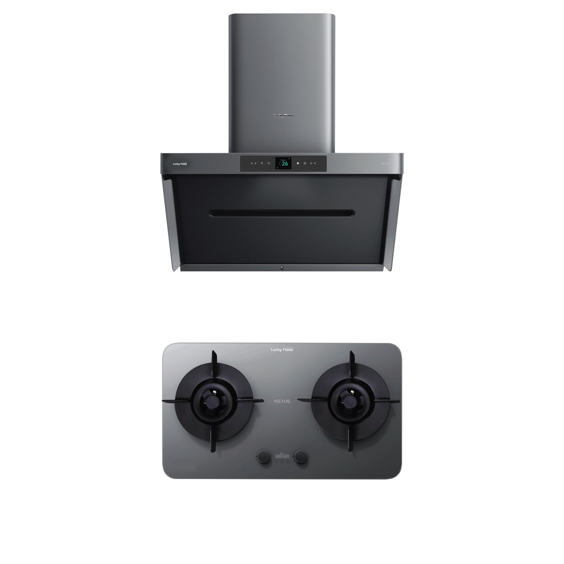 NEXUS Smart Kitchen Set: AI Range Hood paired with a Smart 2-Burner Built-in Glass Hob