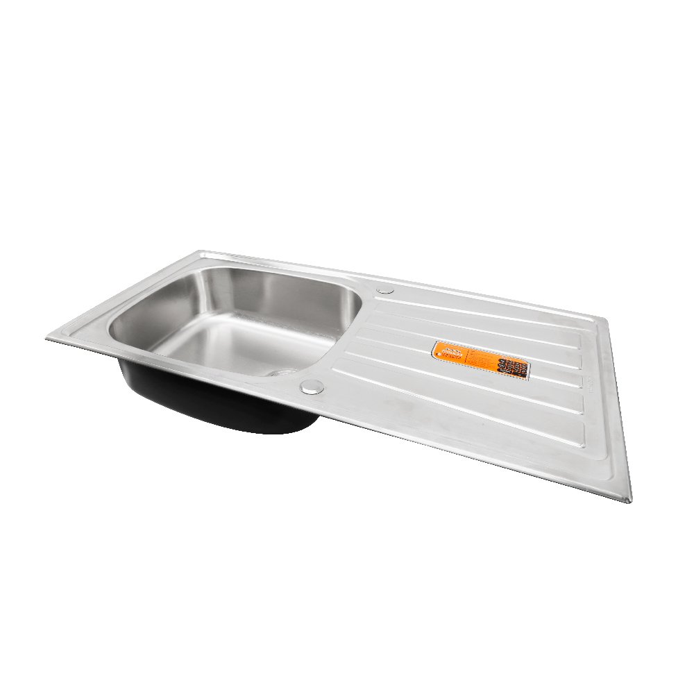 Constructed from premium stainless steel with a 0.6 mm thickness, this sink combines durability, functionality, and sleek design. It features a spacious single bowl, an integrated draining board, and an extra-large waste outlet for efficient drainage. Perfect for modern kitchens seeking both style and practicality.