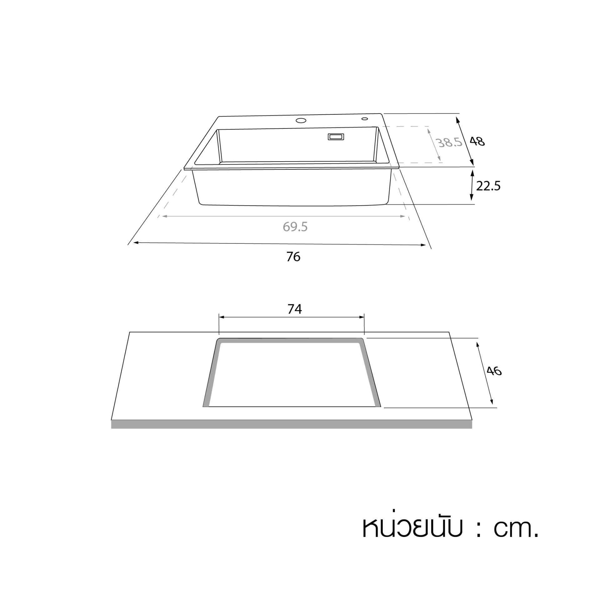 ขนาดหลุม (mm)695 x 385 x 225