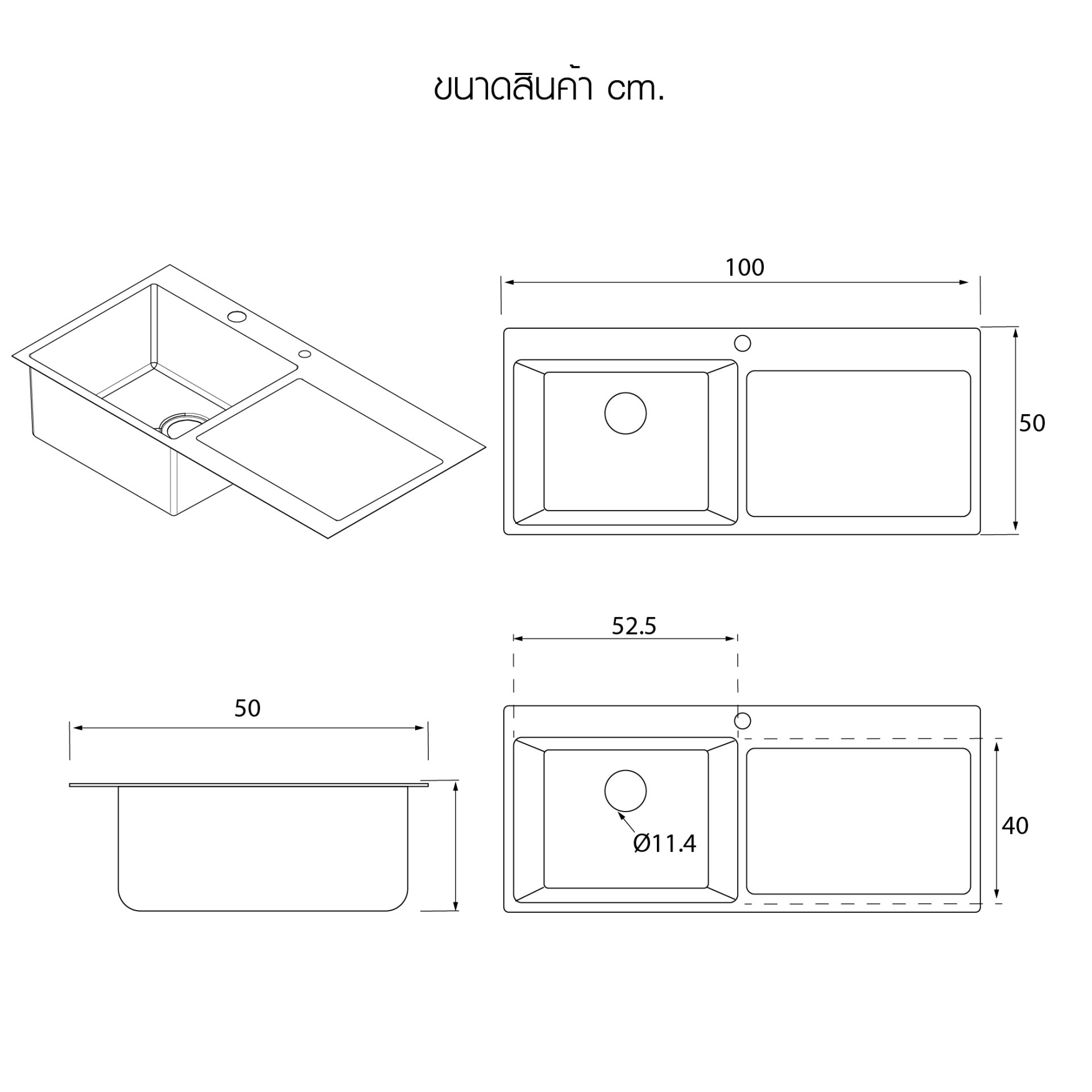 • สะดืออ่างใหญ่ 11.4 ซม. ระบายน้ำได้รวดเร็ว ไม่อุดตัน