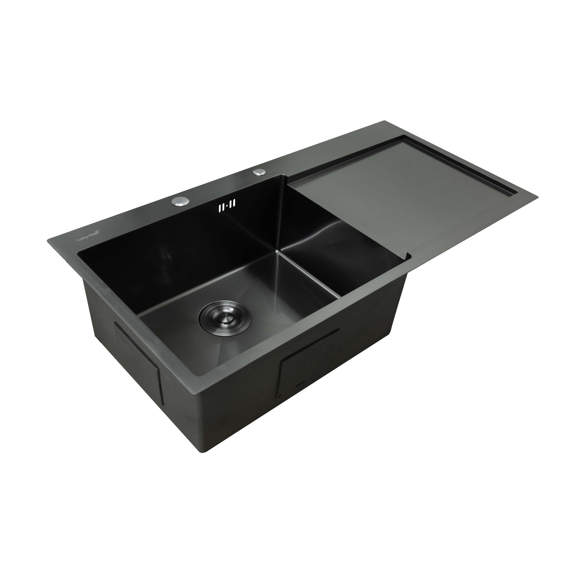 • อ่างล้างจานสแตนเลสเคลือบ PVD สีดำ 1 หลุม พร้อมที่พักจาน ชนิดติดตั้งบนเคาน์เตอร์ Top Mount