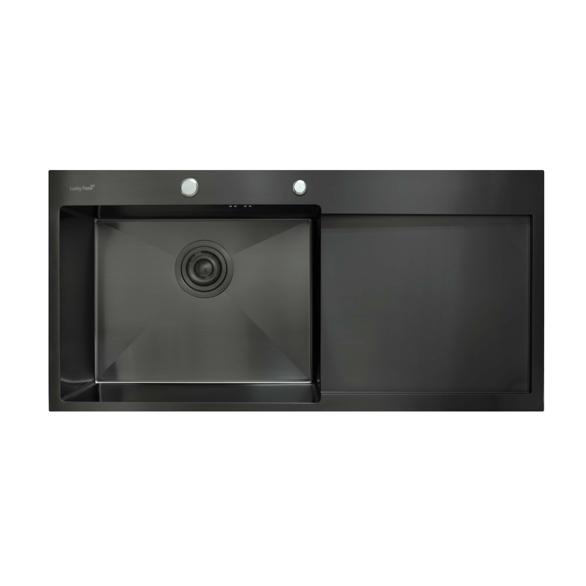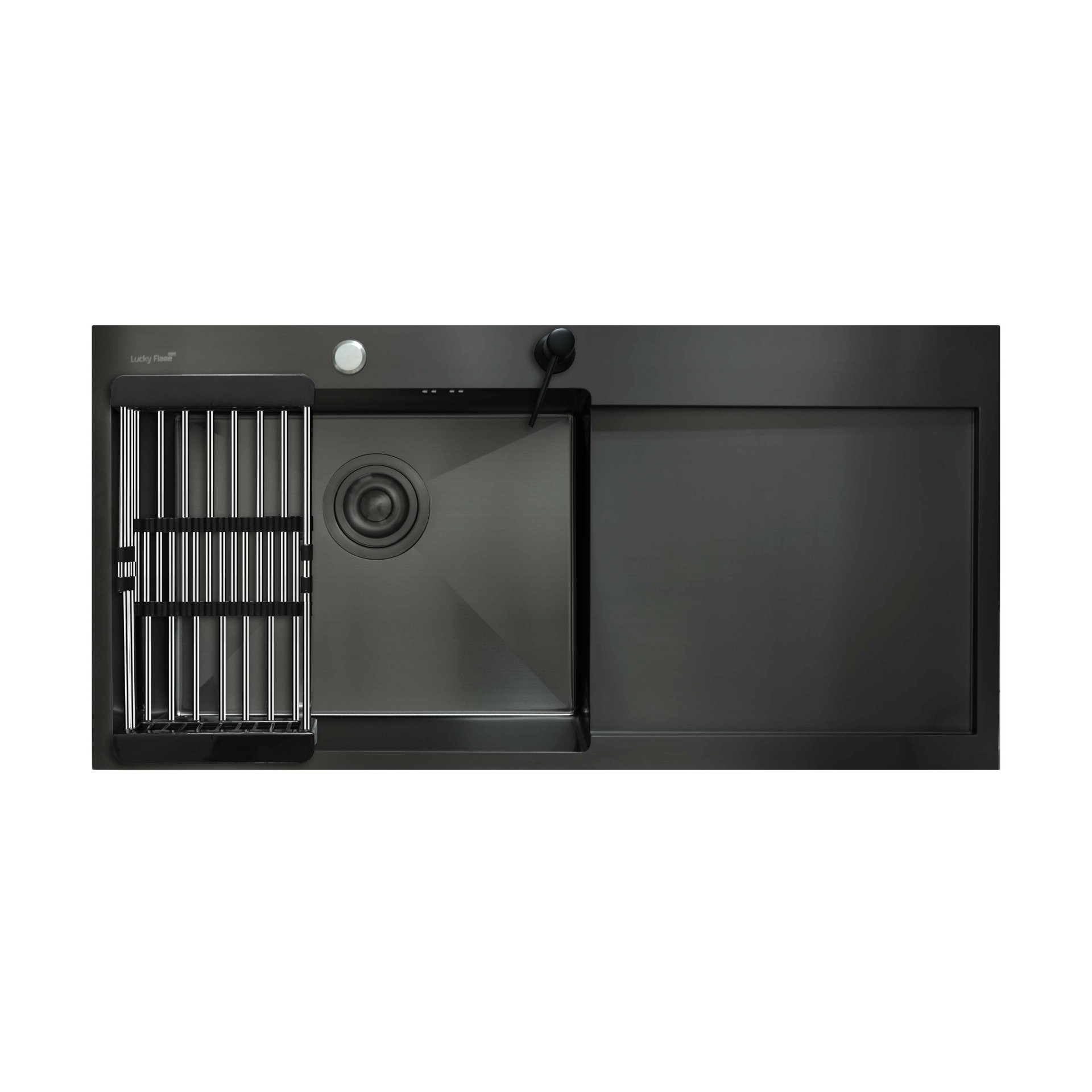 ซิงค์ล้างจานเคลือบ PVD สีดำ 1 หลุม พร้อมที่พักจาน
